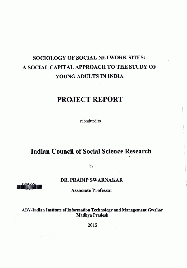 Sociology of Social Network Sites: A social capital approach to the study of young adults in India / Pradip Swarnakar