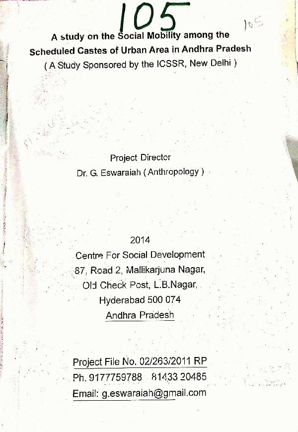 Study on The Social Mobility Among the Scheduled Castes of Urban Area in Andhra Pradesh