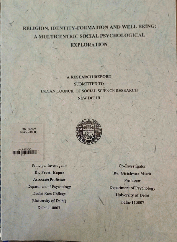 NASSDOC Library | ICSSR Research Project Reports | RK.0247 (Browse shelf(Opens below)) | Not For Loan | 51067 |