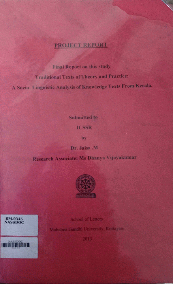 Traditional texts of Theory and Practice A Socio-Linguistic Analysis of Knowledge texts From Kerala