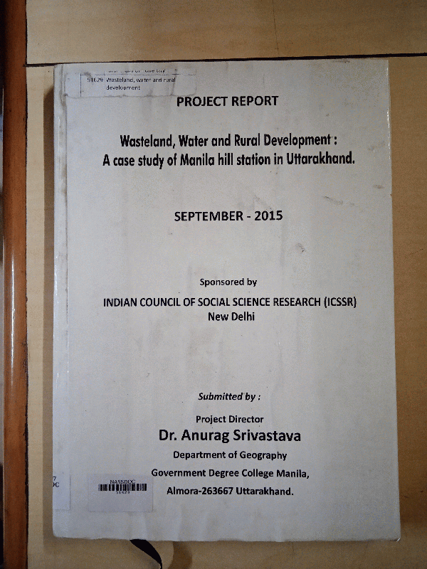Wasteland, water and rural development : a case study of Manila hill station in Uttarakhand / Anurag Srivastava