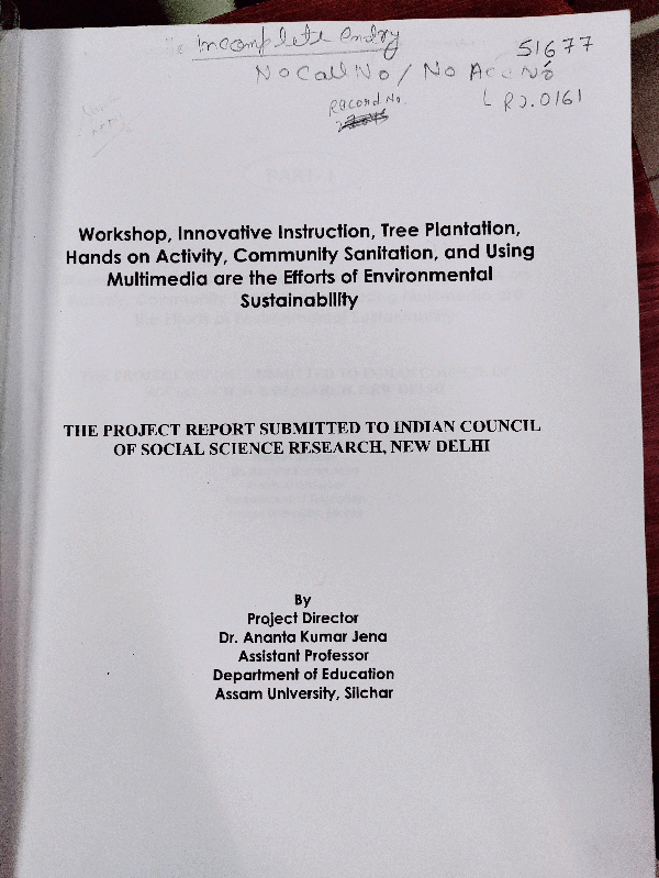 Workshop, innovative instruction, tree plantation, hand on activity, community sanitation, and using Multimedia are the efforts of environmental sustainability / Ananta Kumar Jena