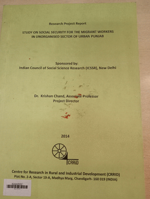 Study on social security for the migrant workers in unorganised sector of urban Punjab / Krishan Chand