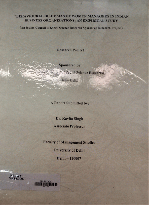 Behavioural dilemmas of women managers in Indian business organizations : An empirical study / Kavita Singh