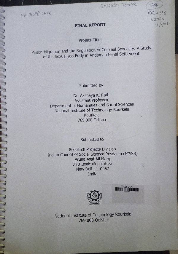 Prison migration and the regulation of colonial sexuality : a study of the sexualised body in Andaman penal settlement / Akshaya K. Rath