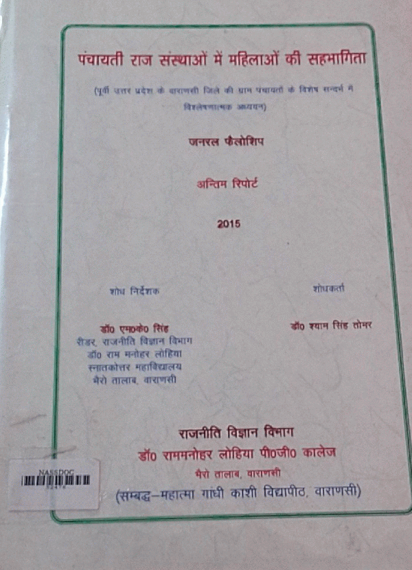पंचायती राज संस्थाओ में महिलाओं की सहभागिता (पूर्वी उत्तर प्रदेश के वाराणसी जिले की ग्राम पंचायतों के विशेष सन्दर्भ में) / श्याम सिंह तोमर