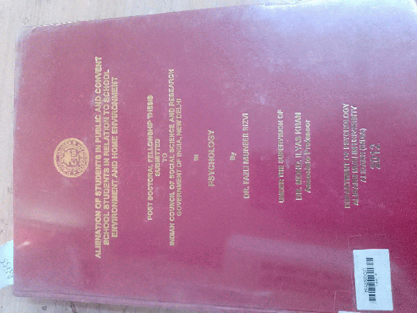 Alienation of students in public and convent school students in relation to school environment and home environment / Fazli Muneer Rizvi
