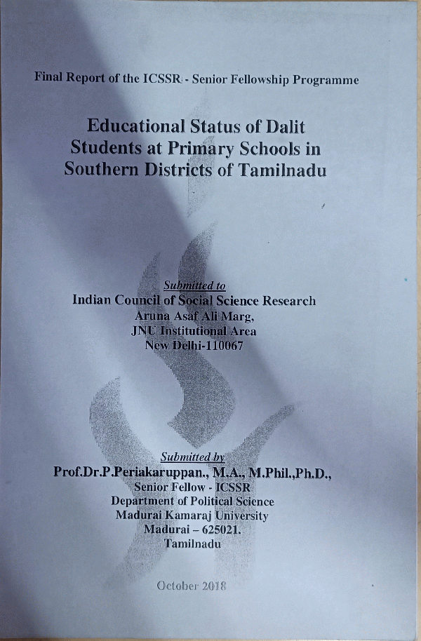 Educational Status of Dalit Students at Primary Schools In Southern Districts of Tamilnadu