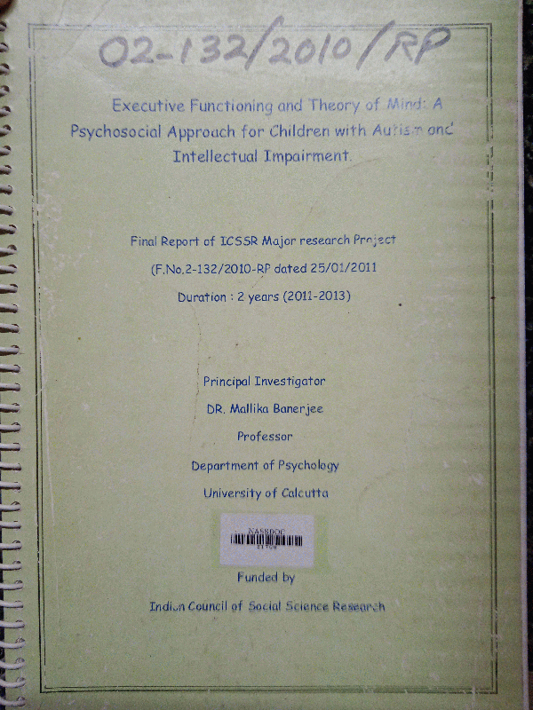 Executive Functioning and theory of mind : a psychosocial approach for children with Autism and Intellectual impairment /