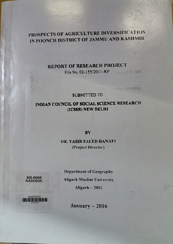 Prospects of agriculture diversification in Poonch district of Jammu and Kashmir /