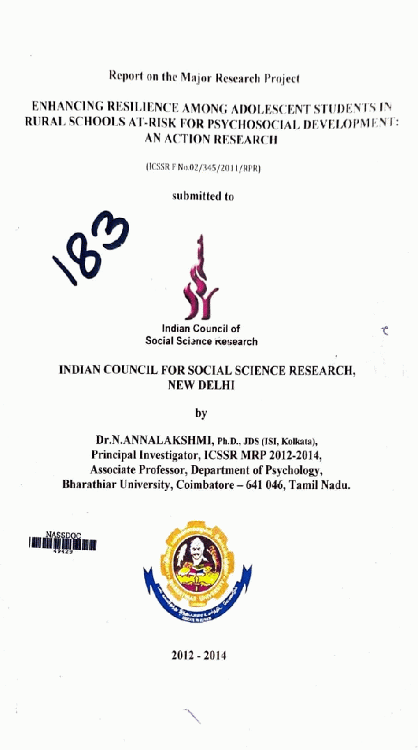 - ADOLESCENT PSYCHOLOGY - ANDHRA PRADESH - CHITTOR DISTRICT